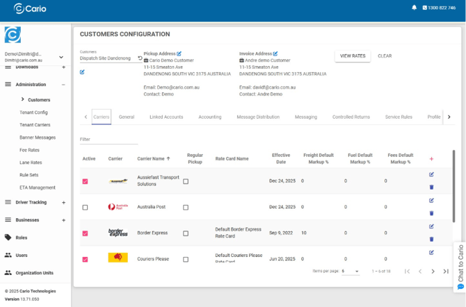 This article explains how to configure and use Third-Party Carrier Charge Accounts in Cario.