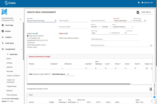 - Navigate to Consignments → Create New