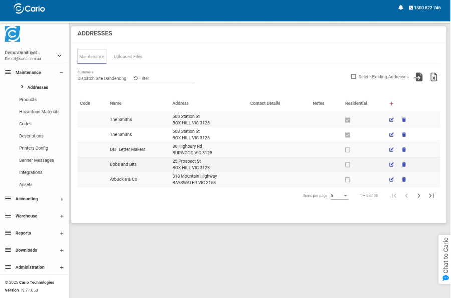 - Navigate to Maintenance → Addresses