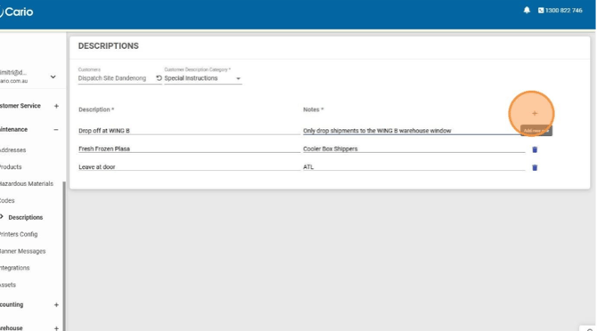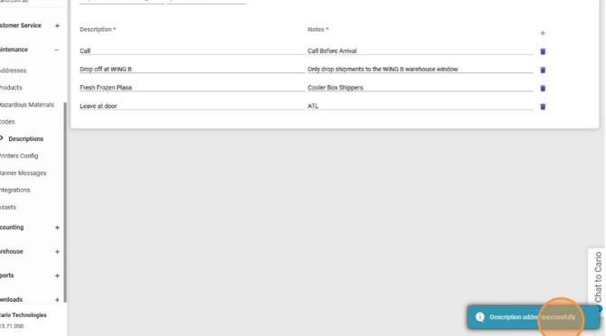https://(yourdomain).cario.com.au/app/maintenance/customerdescriptions - Click Maintenance