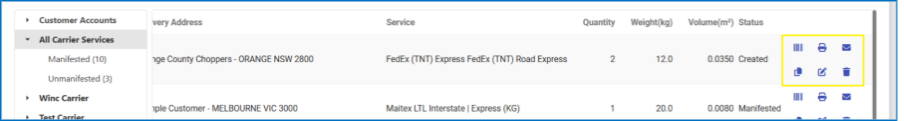 Selecting All Carrier Services clears the filter and displays all consignments.