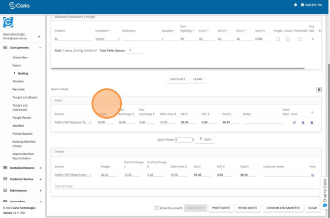 - Quotes must be recalculated if shipment details change