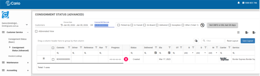- Return consignments follow the same pricing and carrier rules as outbound consignments