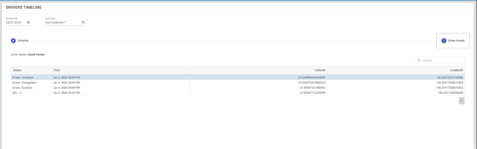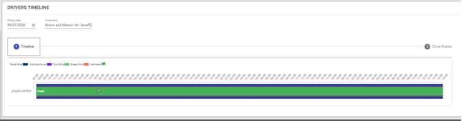 (e.g. Brown and Watson Int – Som…) - The timeline will load driver activity data for the selected date and customer