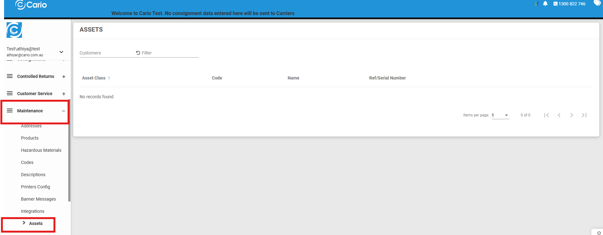 Maintenance → Assets