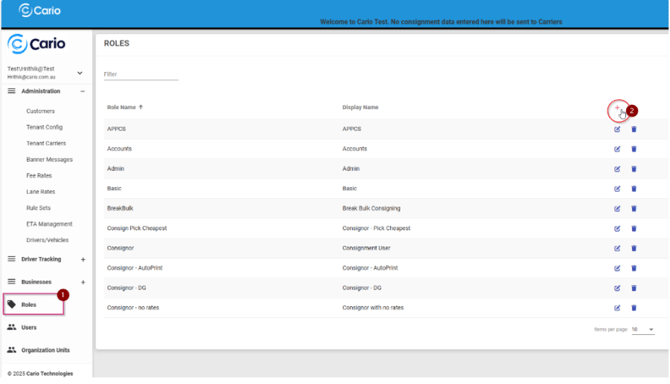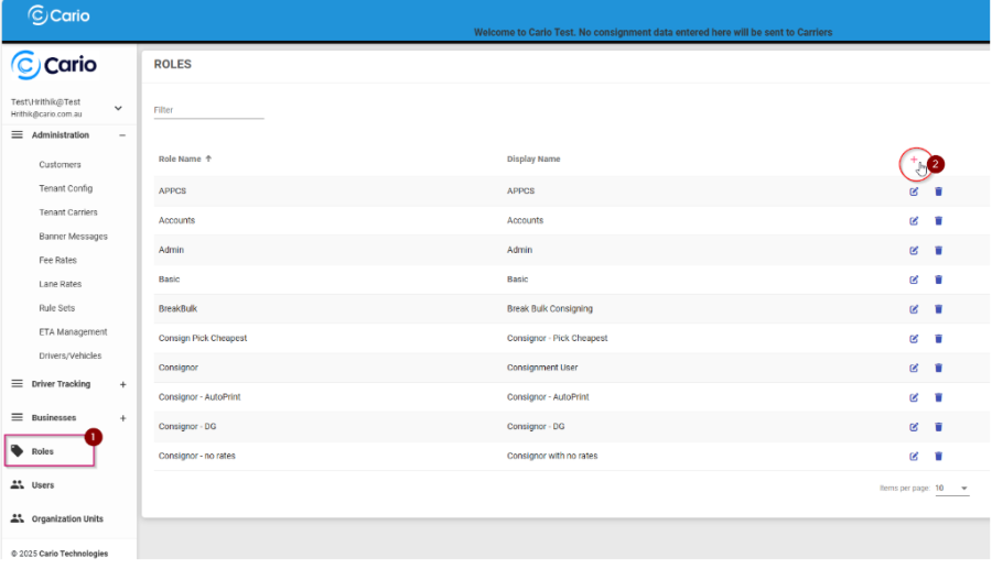 Roles in Cario define what users can see, access, and perform within the Freight Management System (FMS) and Cario Connect TMS. Proper role configuration ensures users have the correct access based on their responsibilities while maintaining security, governance, and operational control.