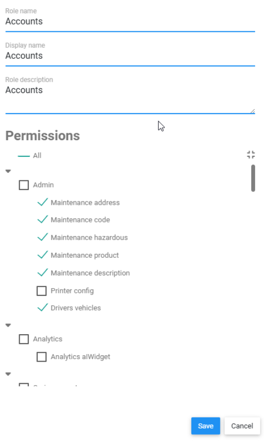 - Click Save to finalise the role