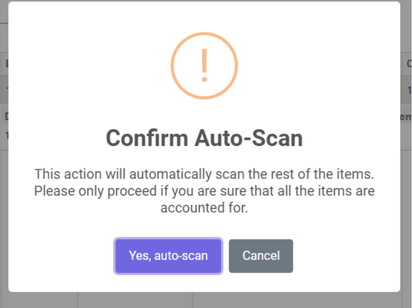 ⚠️ Only use Auto Scan when you are confident all items are present, as this action will automatically mark the remaining items as scanned.