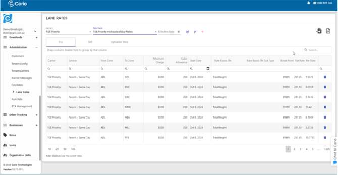 This article explains how to verify lane rate and fee rate updates in Cario by using Quick Quote to ensure the updated rates are calculating correctly before operational use.