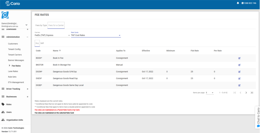 ⚠️ Some carrier cost fees may be maintained by Cario and cannot be edited by customers.