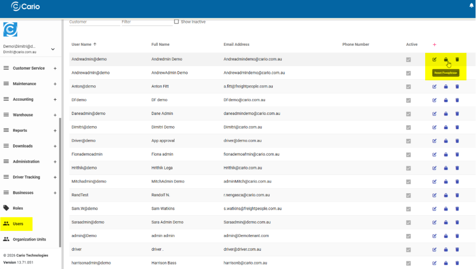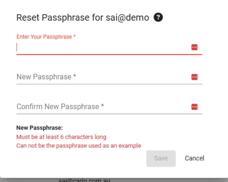 This article explains how Tenant Administrators can reset or create a new password (passphrase) for another user in Cario. This workflow allows admins to securely restore access without needing to know the user’s existing password, ensuring continuity of operations while maintaining security.